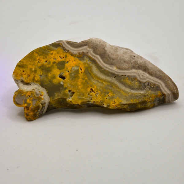 Bumblebee Jasper is a vibrant and mesmerizing crystal that radiates with the energy of joy, vitality, and transformation. Its striking combination of yellow, black, and gray hues resembles the vibrant stripes of a bumblebee, making it a powerful ally for those seeking to ignite their inner fire and embrace profound personal growth.\n\n#EmpowermentAndCourage: Bumblebee Jasper is a stone of empowerment and courage, assisting individuals in overcoming challenges and stepping into their personal power. Its fiery energy ignites a sense of confidence and assertiveness, allowing one to confront fears and limitations with unwavering strength. This crystal emboldens one to pursue their dreams fearlessly, embracing opportunities for growth and transformation.\n\n#CreativityAndExpression: Bumblebee Jasper stimulates creativity and self-expression, inspiring individuals to unleash their artistic abilities and tap into their unique talents. It frees inhibitions, encouraging the exploration of new ideas, and the courage to share one's voice with the world. This crystal sparks inspiration and innovation, unlocking creative potential and fostering self-confidence in artistic endeavors.\n\n#EnergeticPurificationAndProtection: Bumblebee Jasper serves as a powerful energetic purifier, cleansing and revitalizing the aura and physical body. It dissolves energetic blockages and negative patterns, promoting the flow of vital life force energy throughout the entire being. This crystal acts as a shield against negativity, repelling lower vibrations and enhancing one's energetic boundaries.\n\n#ManifestationAndAbundance: Bumblebee Jasper acts as a potent manifesting stone, amplifying intentions and attracting abundance and prosperity into one's life. It aligns with the energies of abundance and success, supporting the realization of one's goals and desires. This crystal enhances one's manifestation abilities by igniting a sense of determination and drive, making dreams become tangible realities.\n\n#TransformationAndPersonalGrowth: Bumblebee Jasper is a catalyst for personal growth and transformation, facilitating deep inner changes and facilitating spiritual evolution. It encourages individuals to embrace their true selves, releasing limitations and old patterns that no longer serve their highest good. This crystal inspires courage, resilience, and adaptability, enabling one to navigate through life's challenges with grace and confidence.\n\n#ElevatedVitalityAndJoy: Bumblebee Jasper infuses one's spirit with heightened vitality and joy, revitalizing the mind, body, and soul. It banishes feelings of lethargy and encourages a zest for life, promoting a positive and enthusiastic outlook. This crystal helps individuals tap into their natural inner joy, inspiring a sense of playfulness, spontaneity, and happiness in daily life.\n\n#SpiritualConnectionAndAlignment: Bumblebee Jasper facilitates a deep spiritual connection and alignment, opening pathways for divine guidance and wisdom. It activates the Sacral and Solar Plexus chakras, stimulating intuition, and enhancing spiritual connectivity. This crystal encourages exploration of higher states of consciousness, aiding in meditation, astral travel, and accessing spiritual realms.\n\nEmbrace the potent energies of Bumblebee Jasper and embark on a transformative journey of empowerment, creativity, and personal growth. Allow its vibrant and joyful energy to invigorate your spirit, while its protective and purifying properties shield you from negativity. With Bumblebee Jasper by your side, you can tap into your true potential, manifest your dreams, and align with the divine forces guiding your path. #BumblebeeJasper #EmpowermentAndCourage #CreativityAndExpression #EnergeticPurificationAndProtection #ManifestationAndAbundance #TransformationAndPersonalGrowth #ElevatedVitalityAndJoy #SpiritualConnectionAndAlignment