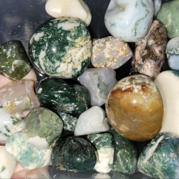 Moss Agate – a gemstone that emanates the calming vibes of nature and nurtures your connection with the Earth.\nMoss Agate is a truly remarkable crystal that captivates with its unique beauty. Its translucent to opaque green appearance resembles a lush forest, with delicate moss-like inclusions that give it an earthy charm. Just gazing upon its mesmerizing patterns can transport you to a serene oasis.\nThis precious stone is not only a treat for the eyes but also a powerful tool for healing. Moss Agate is renowned for its ability to bring stability and balance to your life. It is nature's gift, soothing emotional trauma and encouraging personal growth. With its gentle support, it assists in releasing past burdens and fostering new beginnings.\nEmbrace the embrace the nurturing energy of Moss Agate, as it harmonizes the heart and root chakras, promoting a deep sense of grounding and abundance. By wearing Moss Agate jewelry or placing it in your living space, you invite a refreshing and revitalizing energy into your life.\nWhether you seek emotional healing, grounding, or a stronger bond with the natural world, Moss Agate is here to assist you on your journey. Explore our collection now to find the perfect Moss Agate piece that resonates with your soul.\nIndulge yourself in the beauty of Moss Agate and allow its serene energy to awaken your spiritual path. Visit our website [Insert your website link] to discover the magic of Moss Agate and start your transformative journey today!\nWicked Mystics Healing – Connecting you to the healing power of crystals.