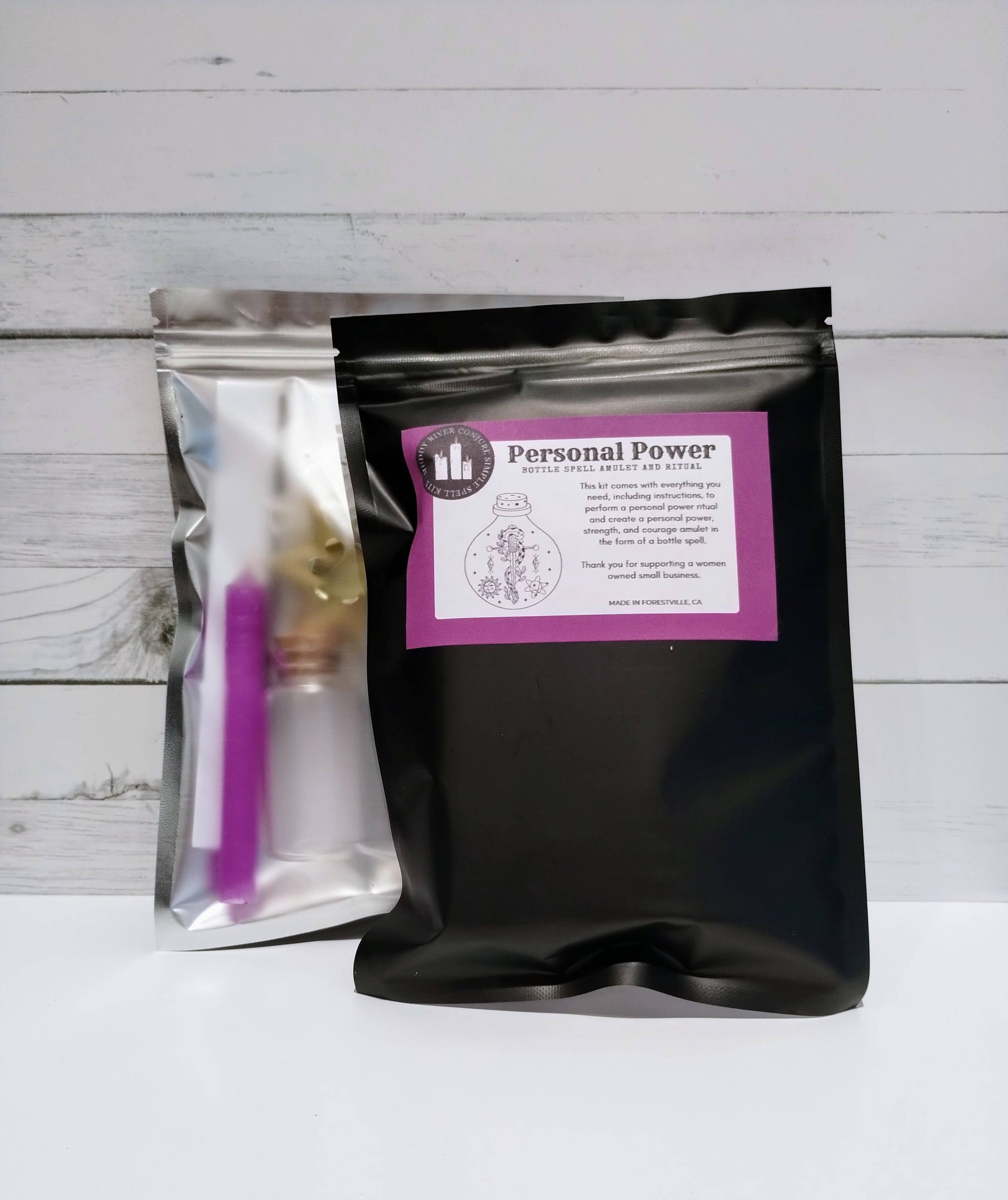 Spell Kit comes in black 4x8 zip top bag with windowed back to show contents