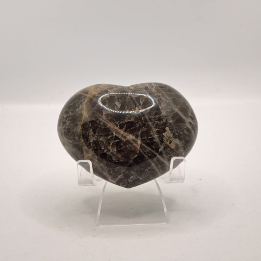 Black Moonstone, is a captivating crystal that combines the mystical energies of Moonstone with the grounding and protective qualities of its black color. This unique fusion creates a powerful metaphysical tool that promotes spiritual growth, emotional balance, and intuitive wisdom.\n#DivineFeminineEnergy: Black Moonstone resonates with the energy of the divine feminine, nurturing and supporting individuals on their journey of self-discovery and inner healing. It enhances intuition, psychic abilities, and the connection with the lunar cycles, allowing for empowerment and embracing one's true nature.\n#EmotionalBalance: Black Moonstone has a calming and soothing energy that helps individuals find emotional balance and stability. It encourages the release of emotional blockages and promotes inner peace, allowing for a harmonious flow of emotions.\n#GroundingAndProtection: The black color of the Moonstone provides a grounding presence, anchoring individuals to the present moment and fostering a sense of stability. It also acts as a protective shield, repelling negative energies and psychic attacks, while keeping one's energy field balanced and fortified.\n#IntuitionAndWisdom: Black Moonstone enhances psychic abilities and intuition, opening the channels to higher realms of consciousness. It deepens the connection with the subconscious mind, dreams, and intuition, allowing for profound insights, wisdom, and spiritual guidance.\n#NewBeginnings: Black Moonstone is a stone of new beginnings, encouraging personal growth, and transformation. It aids in releasing old patterns or beliefs that no longer serve, allowing individuals to embrace change, and embark on a journey of self-discovery and personal evolution.\n#InnerStrengthAndProtection: This crystal is a source of inner strength and resilience, providing support during challenging times. It helps individuals stay grounded and protected, allowing them to navigate life's obstacles with grace and confidence.\n#ManifestationAndAbundance: Black Moonstone assists individuals in manifesting their desires and attracting abundance into their lives. It amplifies intentions and aligns one's energy with the vibration of abundance, promoting manifestation in a grounded and sustainable manner.\n#EmotionalHealing: Black Moonstone aids in emotional healing and self-reflection. It encourages individuals to explore their inner depths, heal past traumas, and release emotional baggage. It fosters self-acceptance, self-love, and emotional growth.\n#InnerWisdom: Using Black Moonstone in meditation or spiritual practices enhances the connection with one's inner wisdom and higher self. It facilitates deep introspection, promotes clarity of thought, and helps individuals gain a deeper understanding of themselves and the world around them.\n#SpiritualProtection: Black Moonstone acts as a shield against negative energies or psychic attacks during spiritual work or intuitive practices. It creates a safe and sacred space for spiritual exploration, ensuring that one's energy remains protected and aligned with higher vibrations.\nEmbrace the transformative and empowering energies of Black Moonstone as you embark on a journey of spiritual growth, emotional healing, and intuitive wisdom. #BlackMoonstone #DivineFeminineEnergy #EmotionalBalance #GroundingAndProtection #IntuitionAndWisdom #NewBeginnings #InnerStrengthAndProtection #ManifestationAndAbundance #EmotionalHealing #InnerWisdom #SpiritualProtection