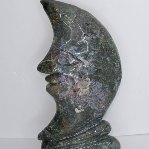 Moss Agate – a gemstone that emanates the calming vibes of nature and nurtures your connection with the Earth.\nMoss Agate is a truly remarkable crystal that captivates with its unique beauty. Its translucent to opaque green appearance resembles a lush forest, with delicate moss-like inclusions that give it an earthy charm. Just gazing upon its mesmerizing patterns can transport you to a serene oasis.\nThis precious stone is not only a treat for the eyes but also a powerful tool for healing. Moss Agate is renowned for its ability to bring stability and balance to your life. It is nature's gift, soothing emotional trauma and encouraging personal growth. With its gentle support, it assists in releasing past burdens and fostering new beginnings.\nEmbrace the embrace the nurturing energy of Moss Agate, as it harmonizes the heart and root chakras, promoting a deep sense of grounding and abundance. By wearing Moss Agate jewelry or placing it in your living space, you invite a refreshing and revitalizing energy into your life.\nWhether you seek emotional healing, grounding, or a stronger bond with the natural world, Moss Agate is here to assist you on your journey. Explore our collection now to find the perfect Moss Agate piece that resonates with your soul.\nIndulge yourself in the beauty of Moss Agate and allow its serene energy to awaken your spiritual path. Visit our website [Insert your website link] to discover the magic of Moss Agate and start your transformative journey today!\nWicked Mystics Healing – Connecting you to the healing power of crystals